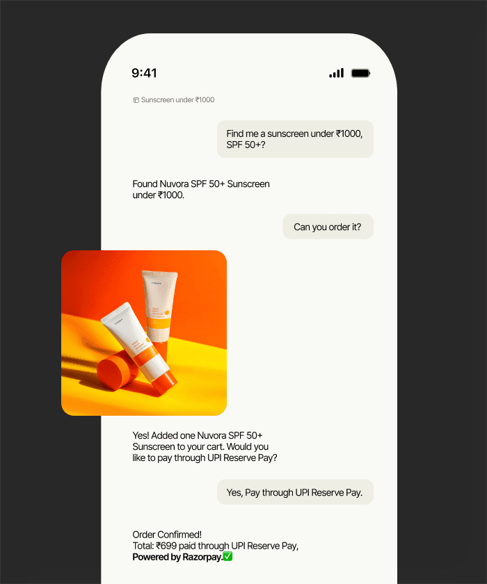 Commerce is shifting from clicks to conversations. Yet transactions still live outside the experience. Razorpay brings payments into AI-native journeys,