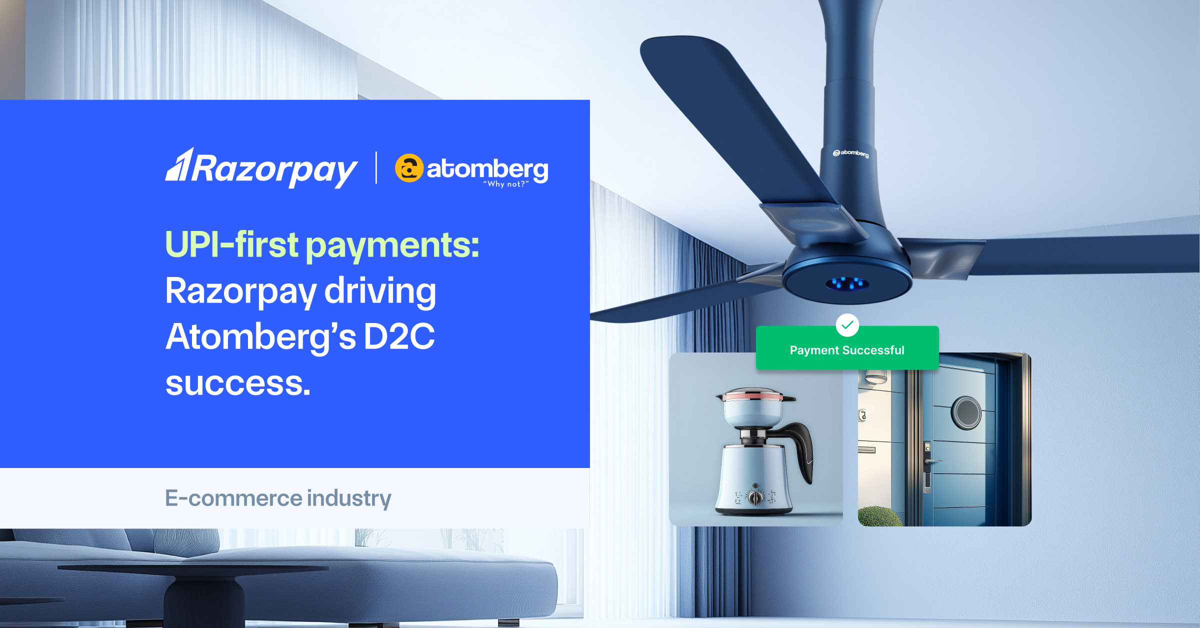 With the launch of new product categories, Atomberg’s direct-to-consumer (D2C) orders started climbing steadily, a thrilling sign of growth—but not without its challenges. As more customers flocked to their website, ensuring a smooth, frictionless payment experience became critical. With an average order value of ₹3.5K, even the slightest hiccup at checkout could risk not just revenue, but customer trust.