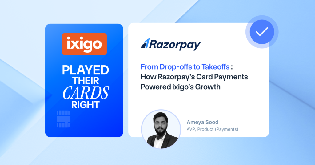 In this conversation with Ameya Sood, AVP of Product – Payments at ixigo, we explore how one of India’s most loved travel platforms is redefining travel bookings for the next billion users. From its early bet on train tech to becoming a full-stack travel super app, ixigo’s journey has been marked by bold decisions and customer-first innovations. We dive into the role of digital payments- especially cards – in powering this journey. With a significant portion of their users opting for card payments, ixigo has focused on eliminating friction at checkout. A strategic partnership with Razorpay has enabled ixigo to deliver smoother, faster, and more reliable payment experiences – driving both higher success rates, unlocking GMV, and delighting users with the best checkout experience across millions of transactions.