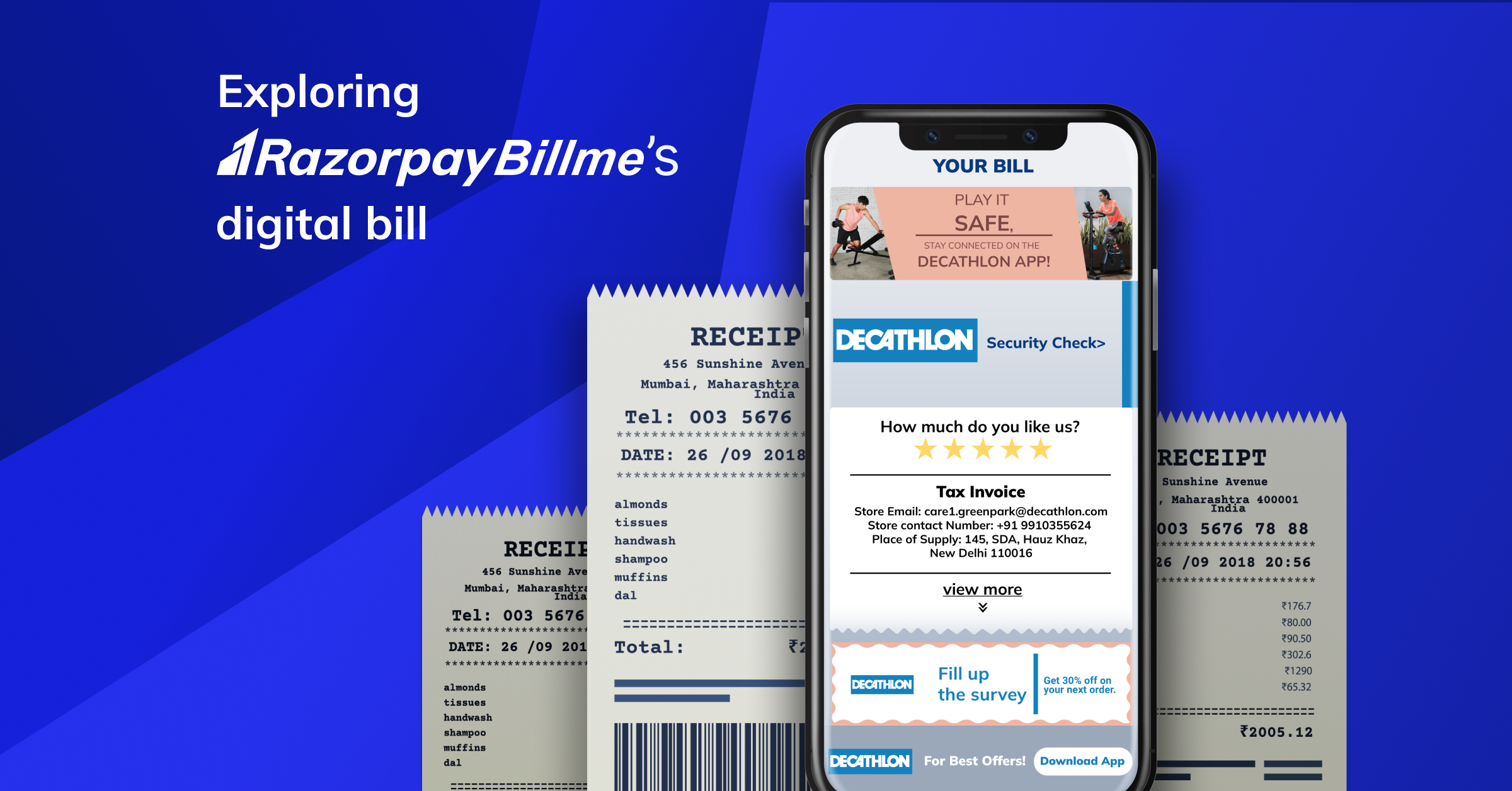 During the checkout process, customers can opt in to receive digital bills through SMS, email, WhatsApp texts or web/app notification. If your customer insists, you can even print out the bill. RazorpayBillme simplifies the customer’s billing journey, and you have a new way of staying connected with your customers.
