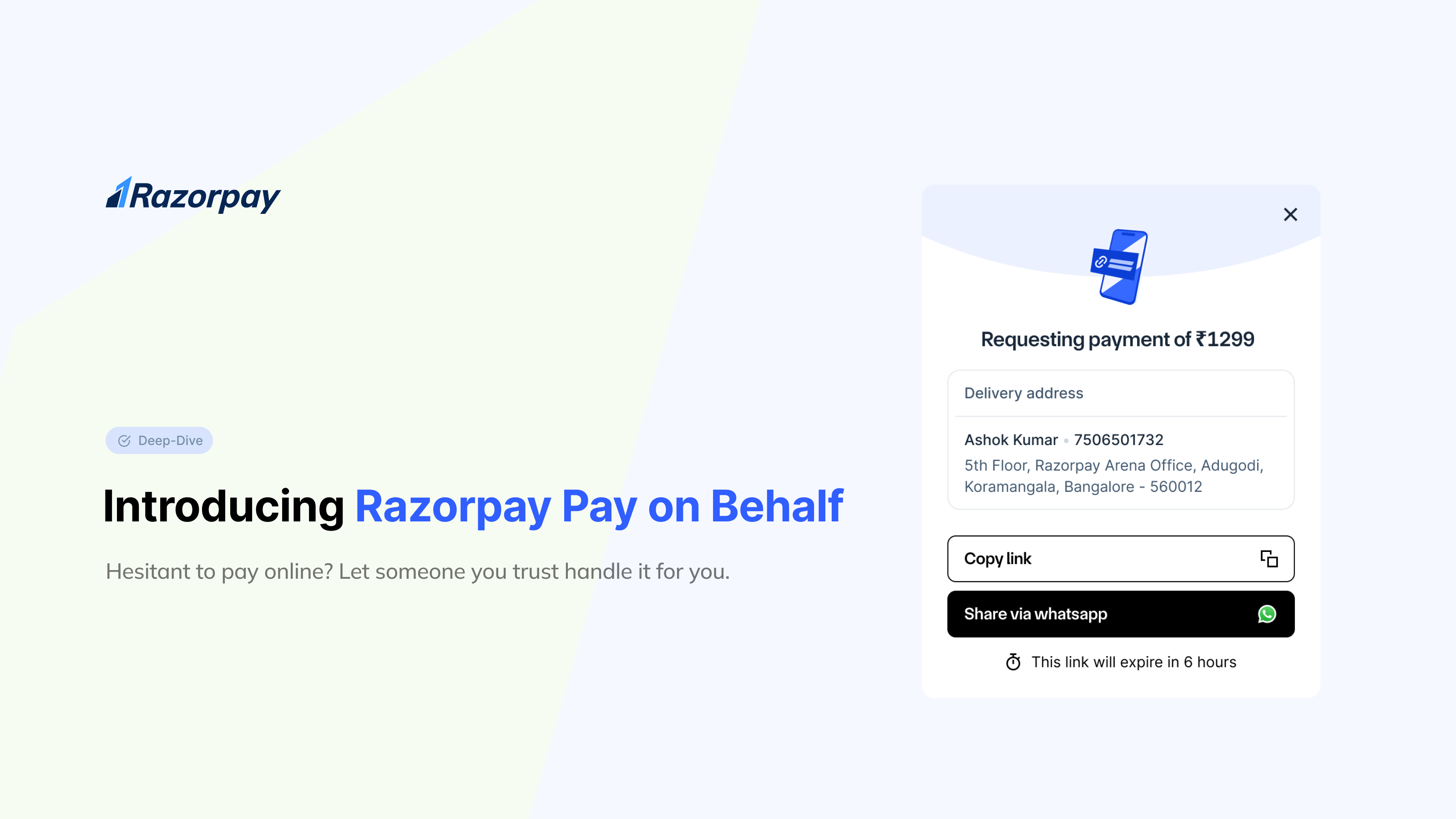 Pay on Behalf by Razorpay—coming soon. Interested? Fill out this quick form to stay updated!