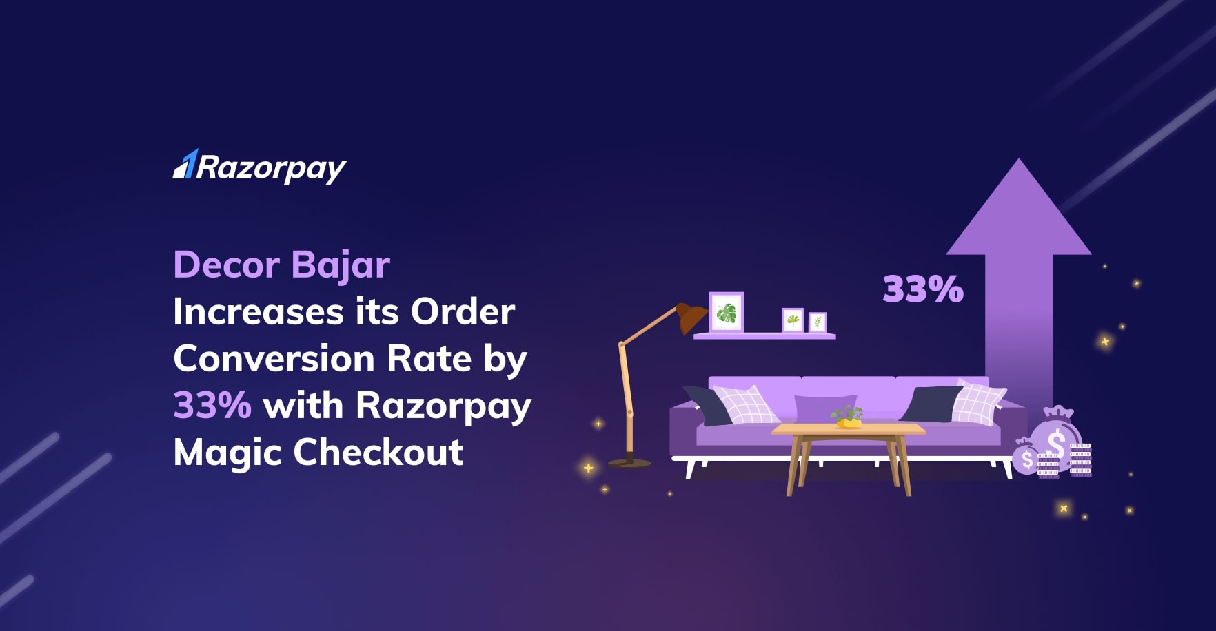 Razorpay Magic Checkout, a one-click checkout solution has successfully lowered the cart abandonment rate of Decor Bajar and increased their order conversion rate by 33%. The brand started seeing positive results after enabling Magic Checkout.