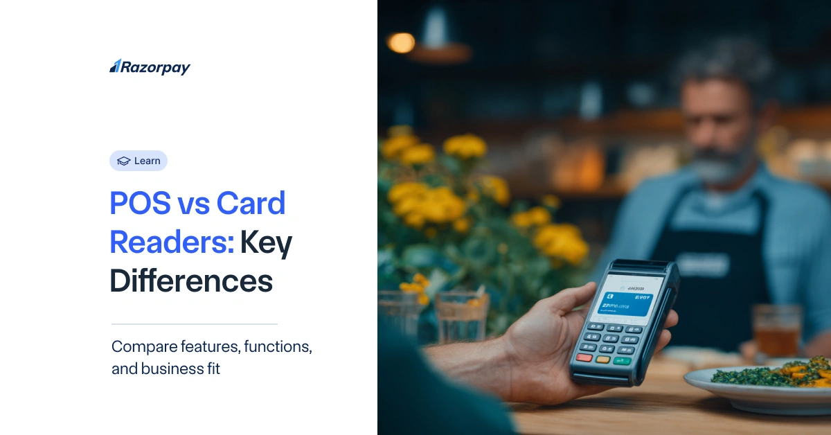 Digital payment methods have revolutionised how customers interact with businesses. From brick and mortar stores to online websites, businesses of all sizes have adopted contactless payment methods. Two major tools that facilitate seamless transactions are Point of Sales (POS) terminals and card readers. However, understanding these tools can get confusing as both serve the same purpose – facilitating seamless contactless transactions. This article will help you understand PoS Vs. Card Readers and how these tools help enhance customer’s interaction with businesses. At Razorpay, we work closely with several types of merchants to simplify contactless payments for both systems. Let’s take a look at POS Vs. Card Readers.