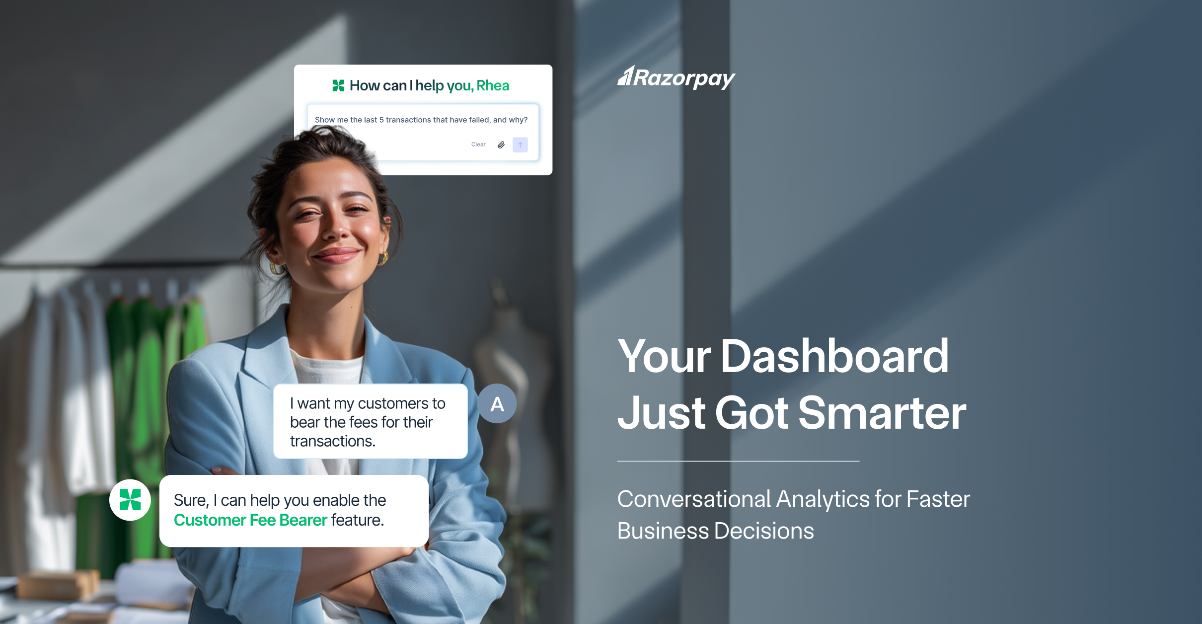 The Agentic Dashboard is the next evolution of your Razorpay Merchant Dashboard, replacing clicks and navigation with a seamless, conversational interface. Powered by advanced AI (harnessing the power of RAY), it acts as an intelligent assistant, ready to answer your questions, surface insights, and eventually it will complete tasks the moment you ask.