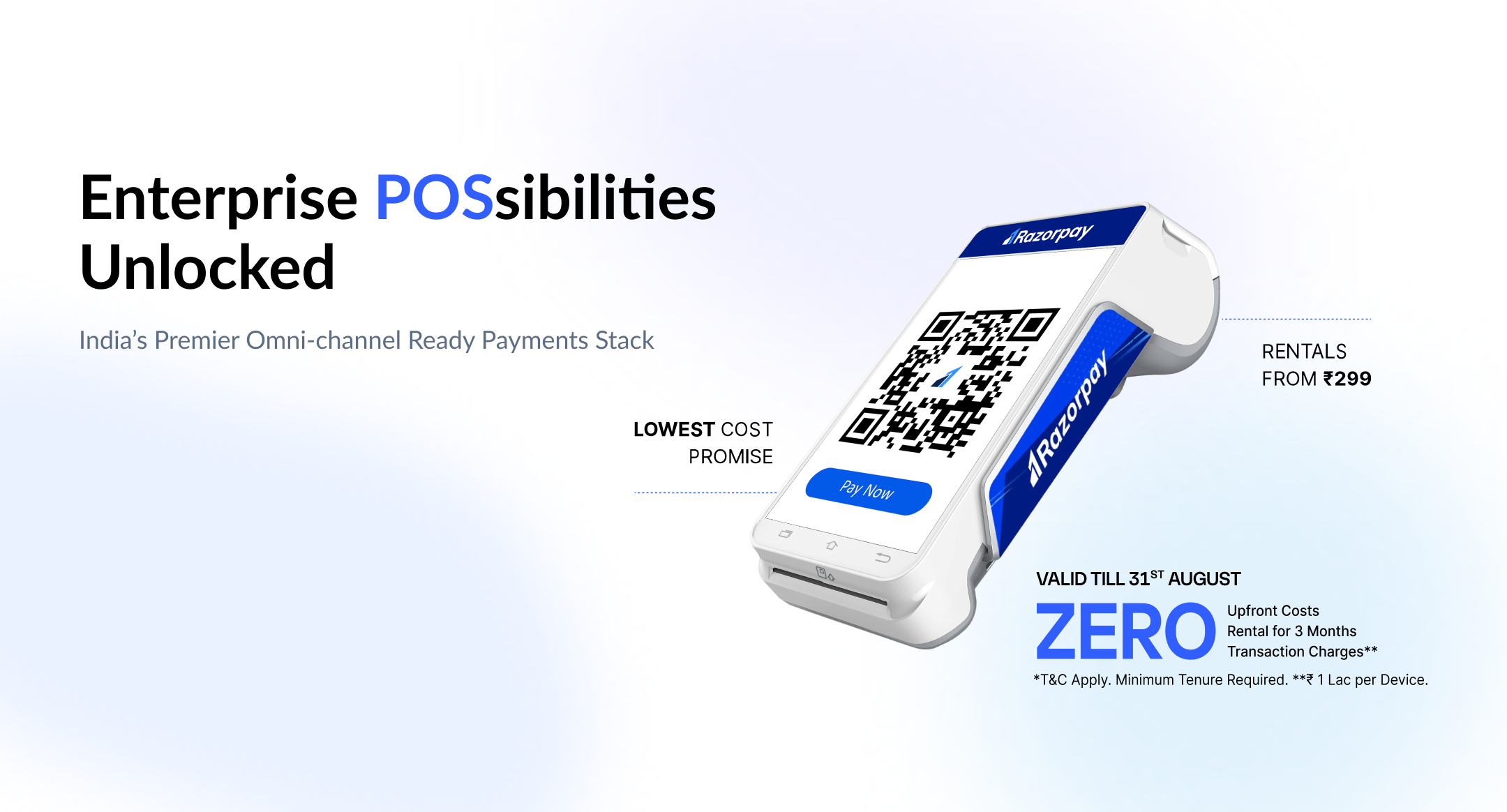 There couldn’t be a better time to experience India’s premier omni-channel ready payments stack. Here’s everything you need to know about the irresistible new Razorpay POS offer.* Head over to razorpay.com/pos for more details!