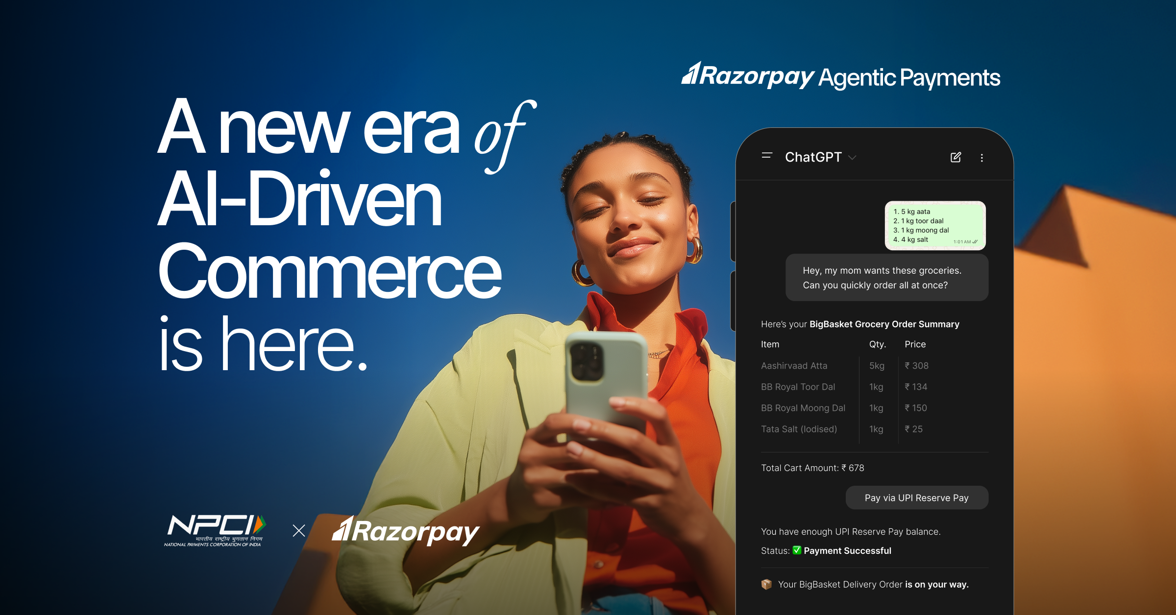 As Preeti Jain, Product Head, bigbasket, a tata enterprise says “With Agentic Payments, we’re enabling effortless shopping through AI assistants. From discovery to checkout, bigbasket and Razorpay integration delivers a fast, seamless grocery shopping experience—all in one conversation.”