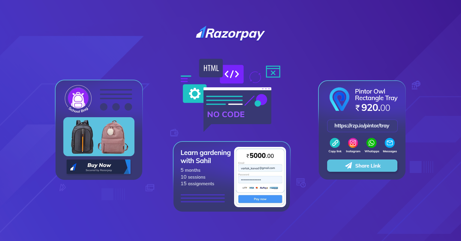 - Payments: No Code Payment Solution: Razorpay Payment Pages