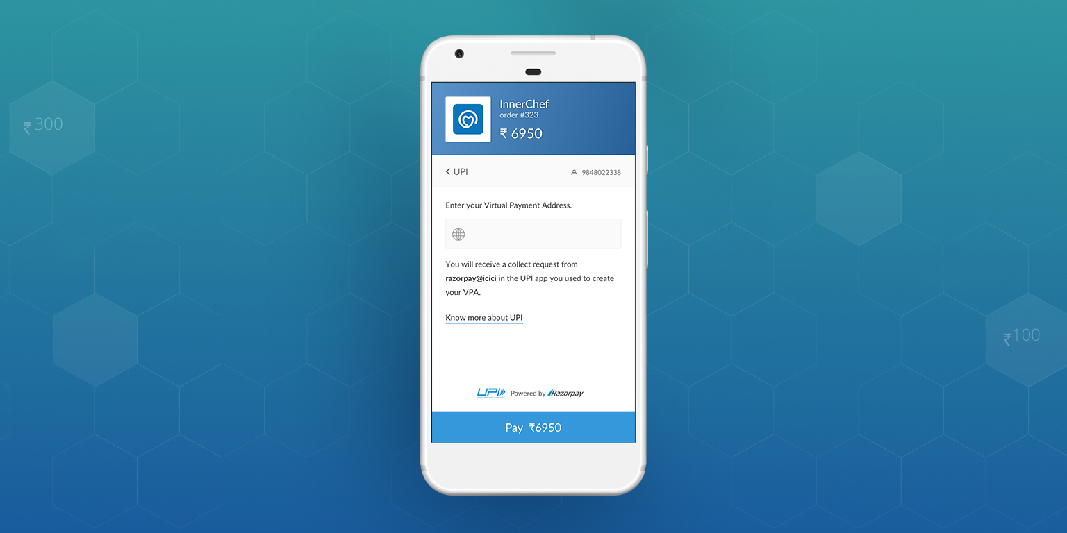 Each customer on UPI has a unique identifier in the form of Virtual Private Address (VPA). This is like an alias for the customer’s bank account. So instead of having to provide IFSC + bank account or card details, users can now identify themselves through a simple VPA that looks like this: razorpay@icici.