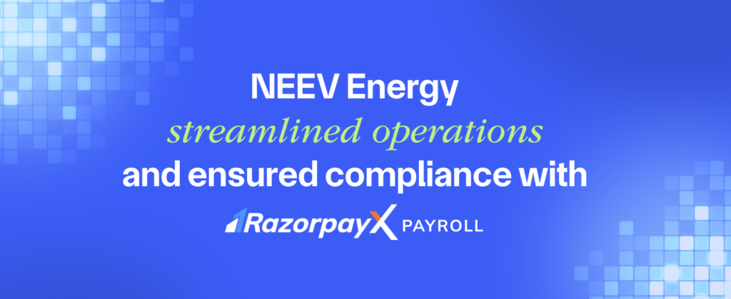 In Payroll How Neev Energy Streamlined Operations with RazorpayX Payroll December 19, 2024 1 Min Read Share Share on Facebook Share on Twitter LinkedIn Email Explore RazorpayX Payroll Explore RazorpayX Payroll Signup for a free demo! Author Raghavi Kasa Raghavi likes to think that because she writes for a living, she'd be good at writing a short bio for herself. But she isn't. She is good at binging K-drama, though. Related Posts Managing Employee Reimbursement on Spreadsheets? Here’s a Better Way June 19, 2025 RazorpayX Payroll: India’s First Fully-Automated Payroll & Compliance Software February 20, 2025 Employee Code of Conduct Policy December 16, 2024