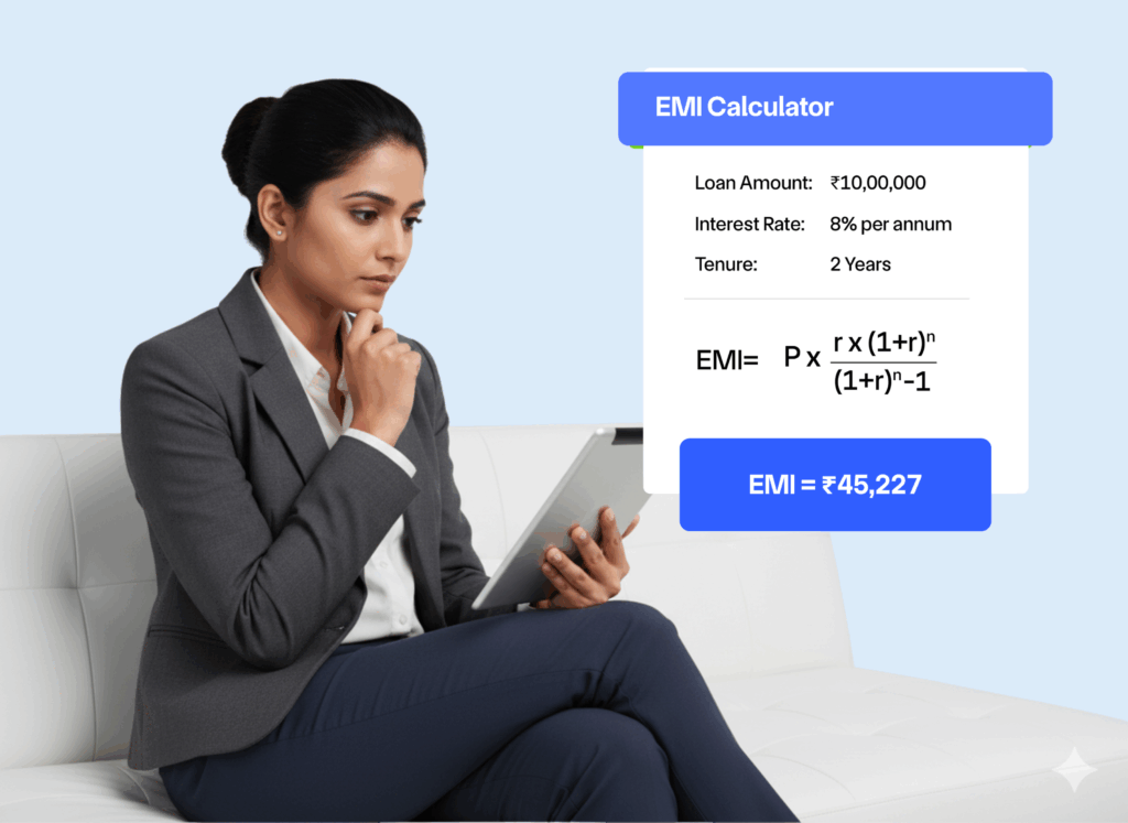 - Select Loan Tenure – Choose your repayment period in months or years.