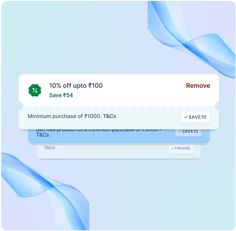 Increase your customer spends and average order value with no additional effort. Razorpay sourced personalised offers for your customers will help you drive sales and increase the spends per customer.