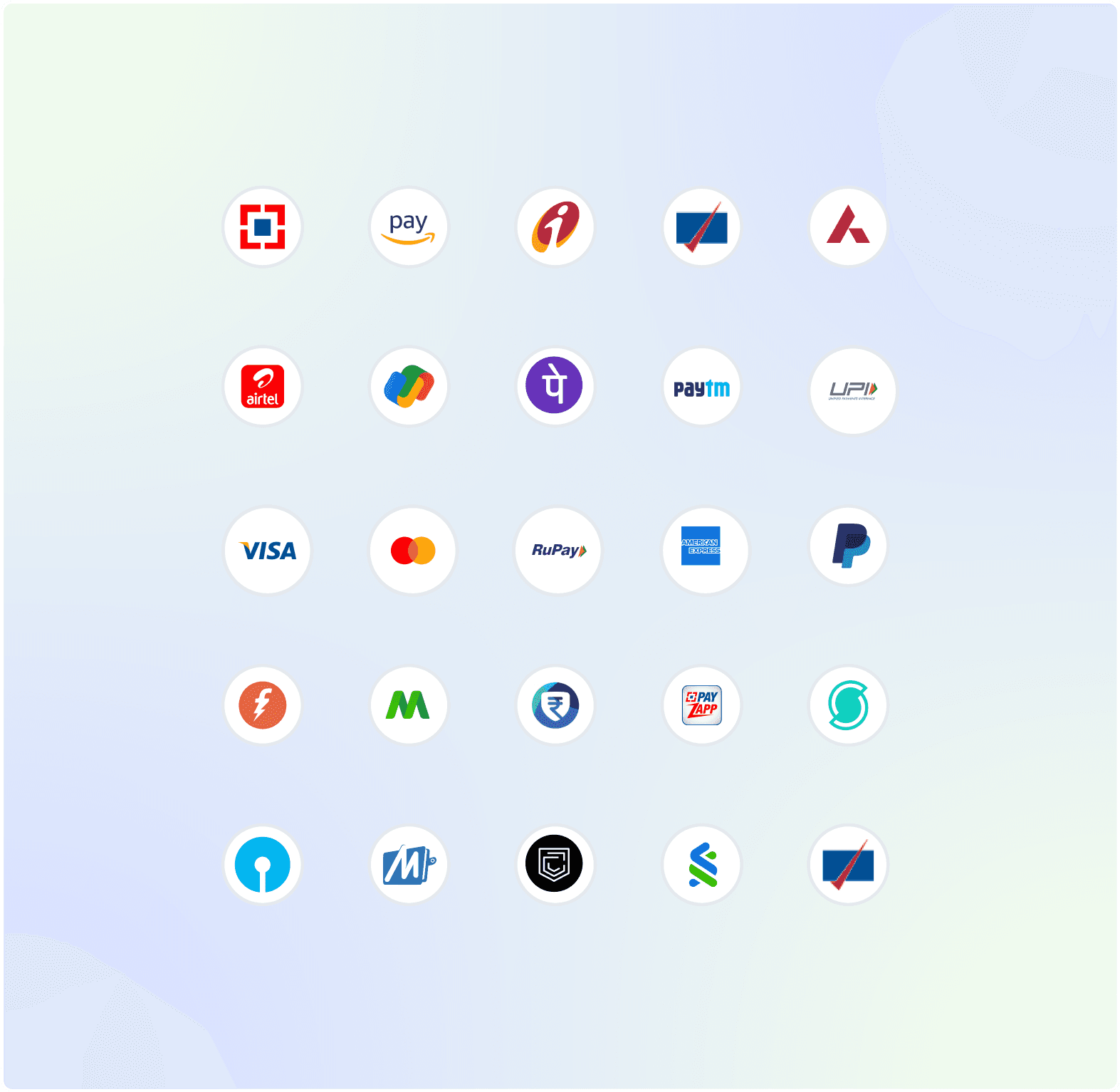 Razorpay is the only payments solution in India that allows businesses to accept, process and disburse payments with its product suite. It gives you access to all payment modes including credit card, debit card, netbanking, UPI and popular wallets including JioMoney, Mobikwik, Airtel Money, FreeCharge, Ola Money and PayZapp.