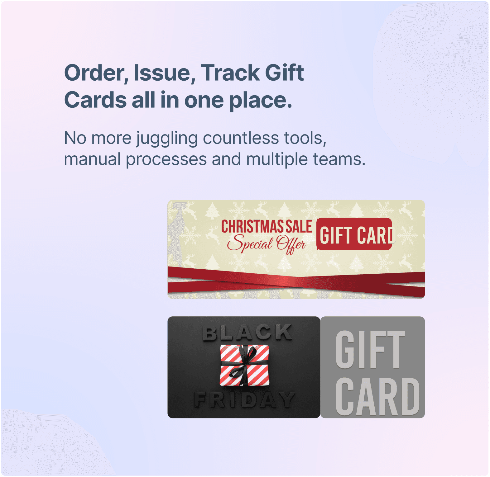Our no-code solution simplifies Gift Card creation, fund movement, and order processing. Grow key categories and reduce margin burn with line-of-business gift cards, and gain detailed insights into reseller-specific GC programs, including issuance, redemption, breakage, and profitability trends.