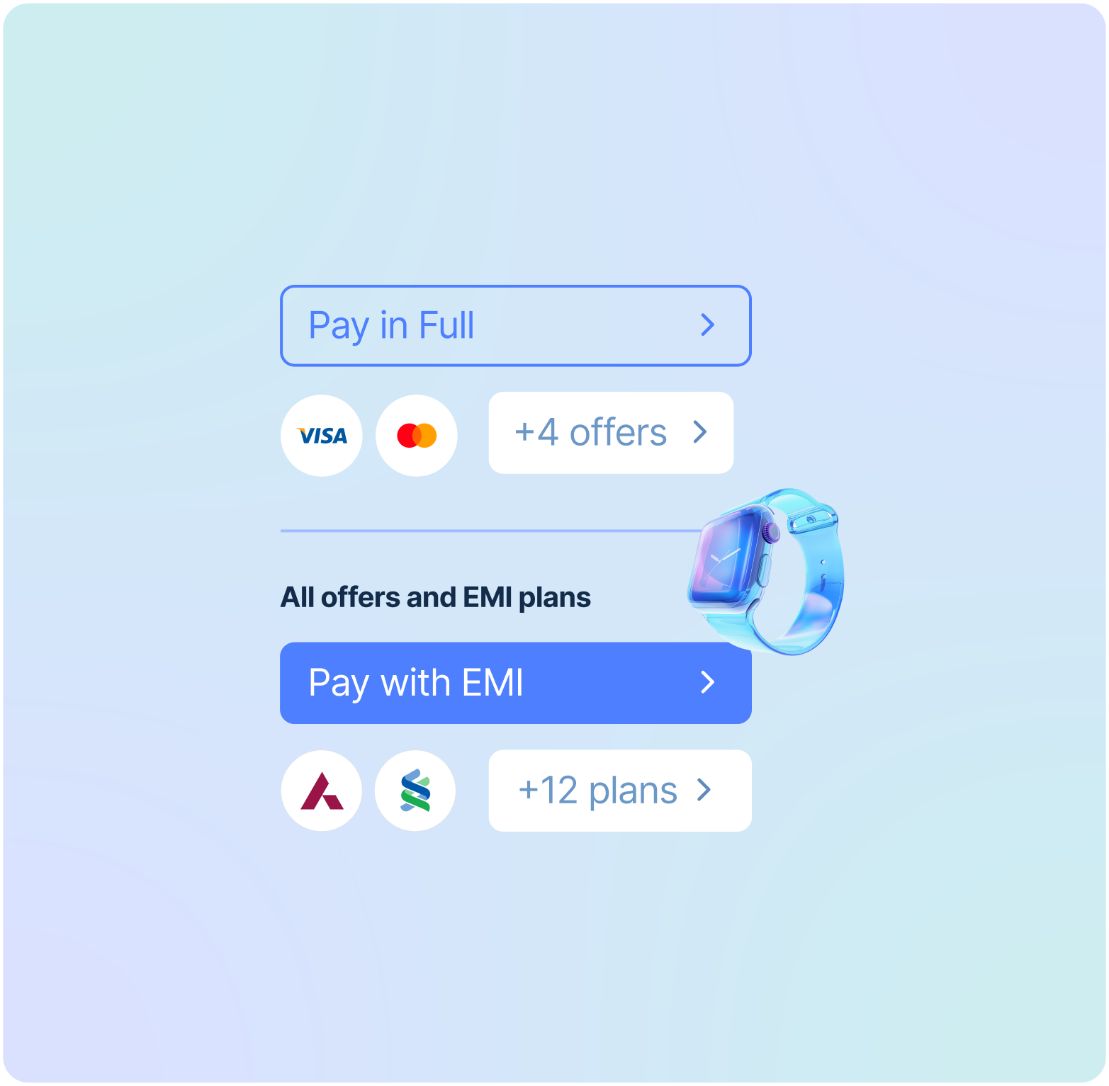 Offer your customers easier access to credit and EMI facilities ensuring a seamless experience from product discovery to offer selection to payment completion. With easier access to affordable credit options make large purchases easier for your customers and see a boost in average order value.