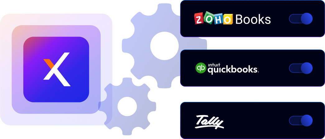 Get going with a 15-second setup to connect with Tally, QuickBooks, or ZohoBooks in just a few clicks.
