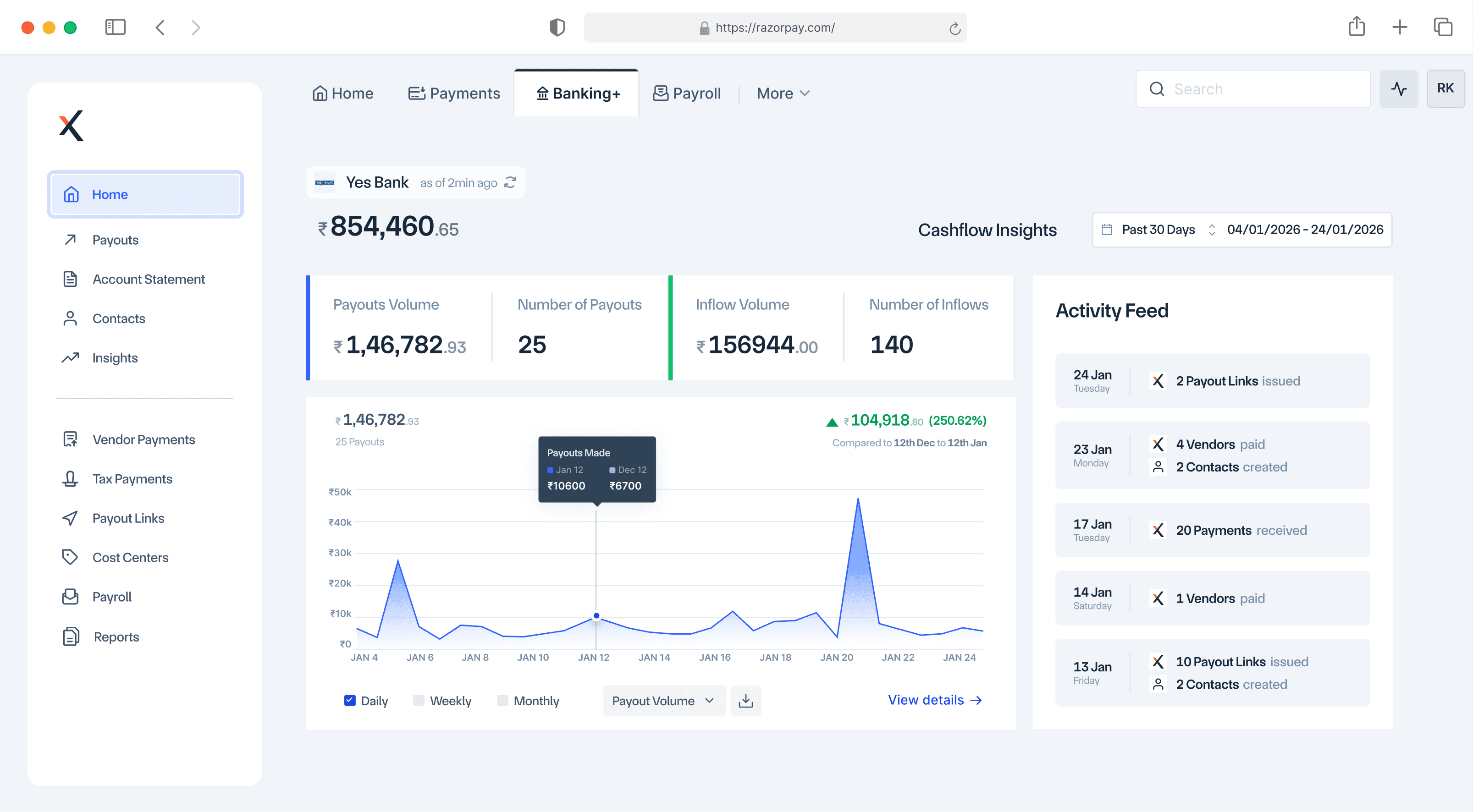 RazorpayX made partner payouts 100% error-free, 80% faster & fully automated - completely streamlining our weekly financial operations.